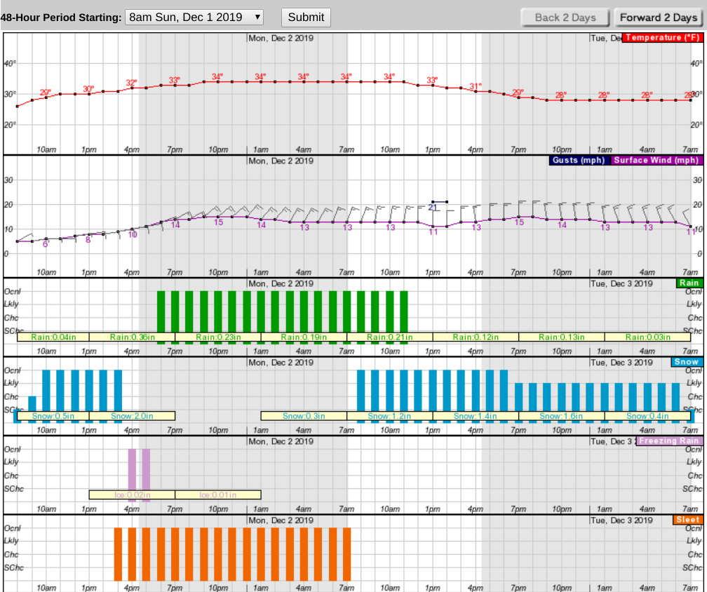 Here's the NWS hourly forecast for the next 48 hours starting 8 a.m. Sunday: