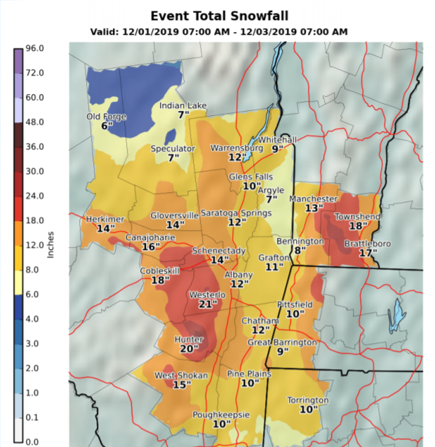 UPDATE TUESDAY SEE: Interim Snow Totals For Hudson Valley: National Weather Service