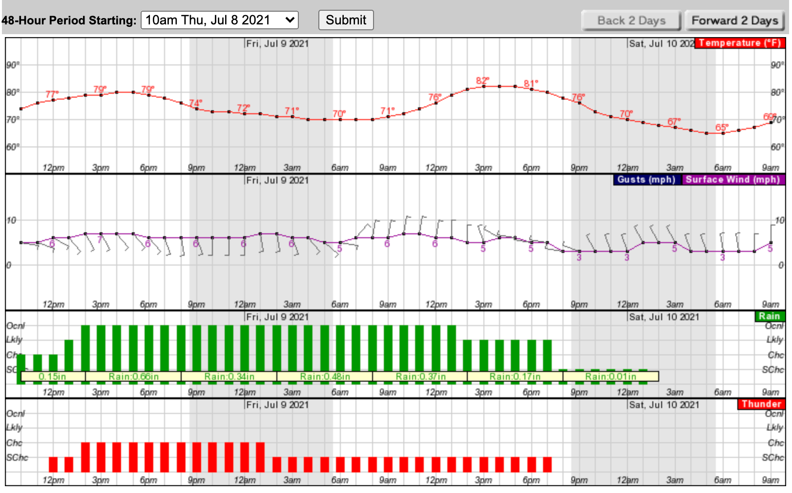 Heavy rainfall ahead of both a frontal boundary and tropical system Elsa will move through with periods of heavy rainfall into early Friday afternoon. Total rainfall Thursday afternoon through Friday is expected to range from 1.5 to 3 inches, with locally higher amounts possible.