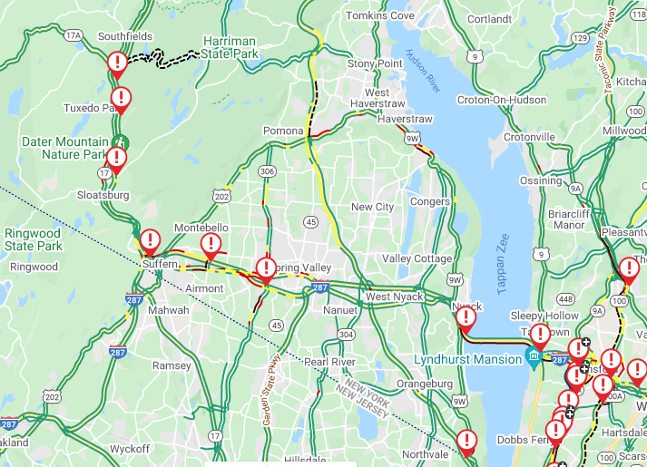 Multiple incidents were reported on the New York State Thruway through Rockland. Clarkstown and Ramapo police have responded to many accidents.