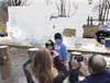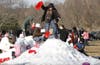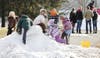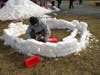 Many people took to hiking around the lake while learning some of the park's history from signs posted along the trail. Nearby, children climbed on large piles of snow in the event's Igloo Village while others formed blocks out of the snow and built their own.
