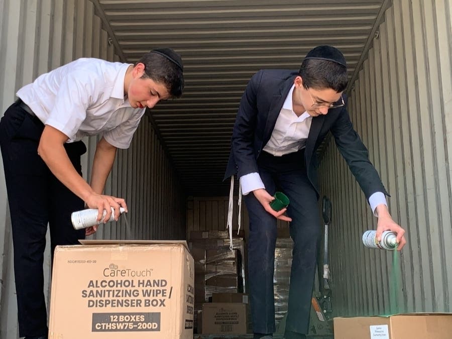 The packed delivery trucks were unloaded by forklift and by about half a dozen students attending Yeshiva Degal Hatorah in Spring Valley, accompanied by their principal, Rabbi Moshe Schwab.