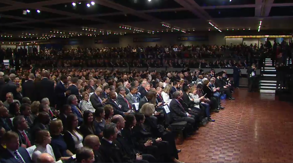 The speech took place at the Empire State Plaza Convention Center. The large audience included state officials including judges, members of the state Senate and Assembly.