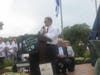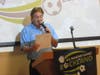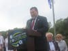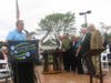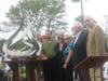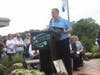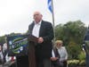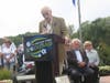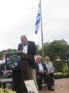 After the luncheon, the crowd gathered around the new sculpture on the front lawn of the campus. Dr. Ben Berger, the father of fallen Munich 11 weightlifter David Berger, attended the event with his family.