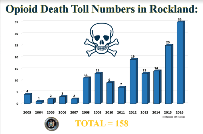 In Rockland County, there were 35 opiod-related deaths in 2016, compared to 7 in 2011, Carlucci said.