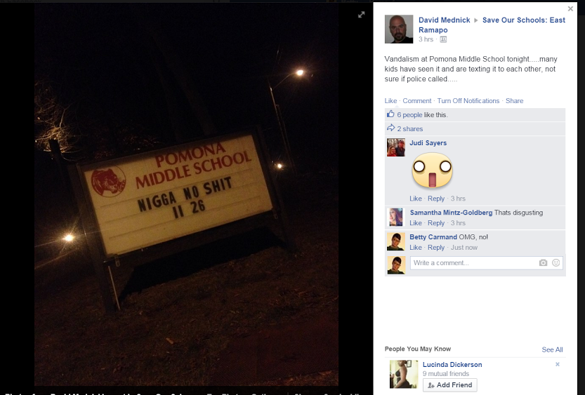 Someone rearranged the letters on the sign outside Pomona Middle School overnight, causing an uproar across Rockland County and on social media.