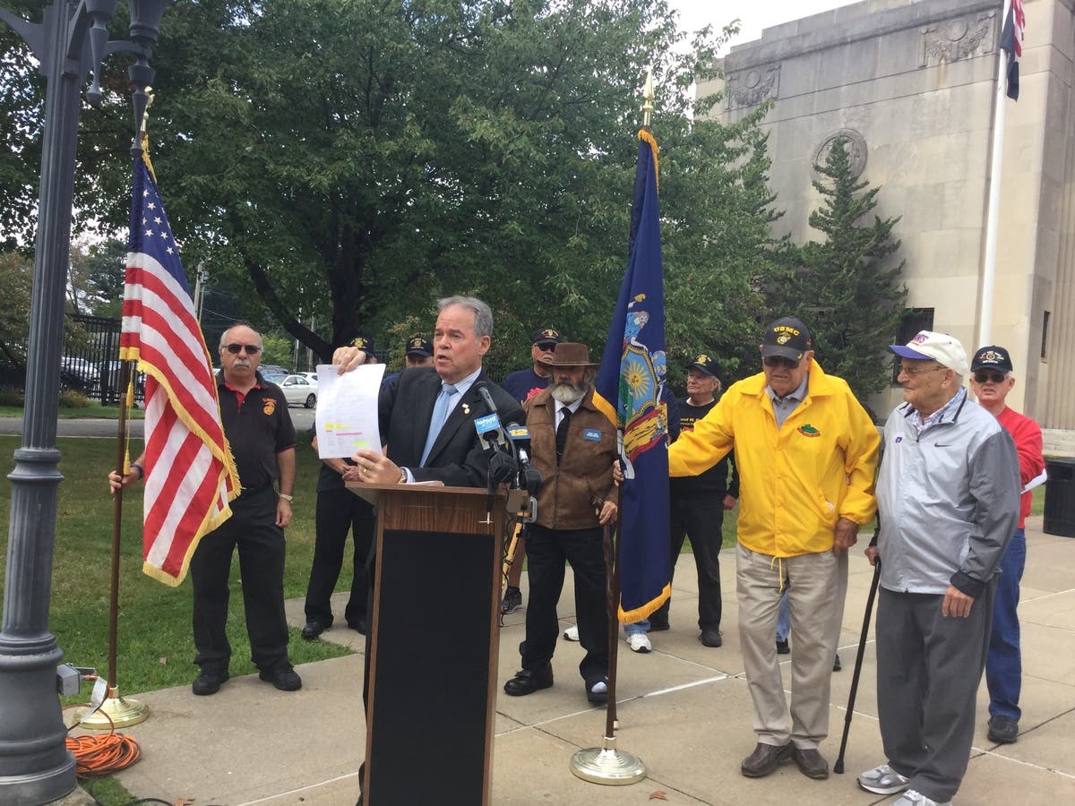 "This is about a clear pattern of abuse of our electoral system," the County Executive said as he stood surrounded by veterans who fought to preserve that right. "It's about how the most sacred right we hold as Americans can be gamed."
