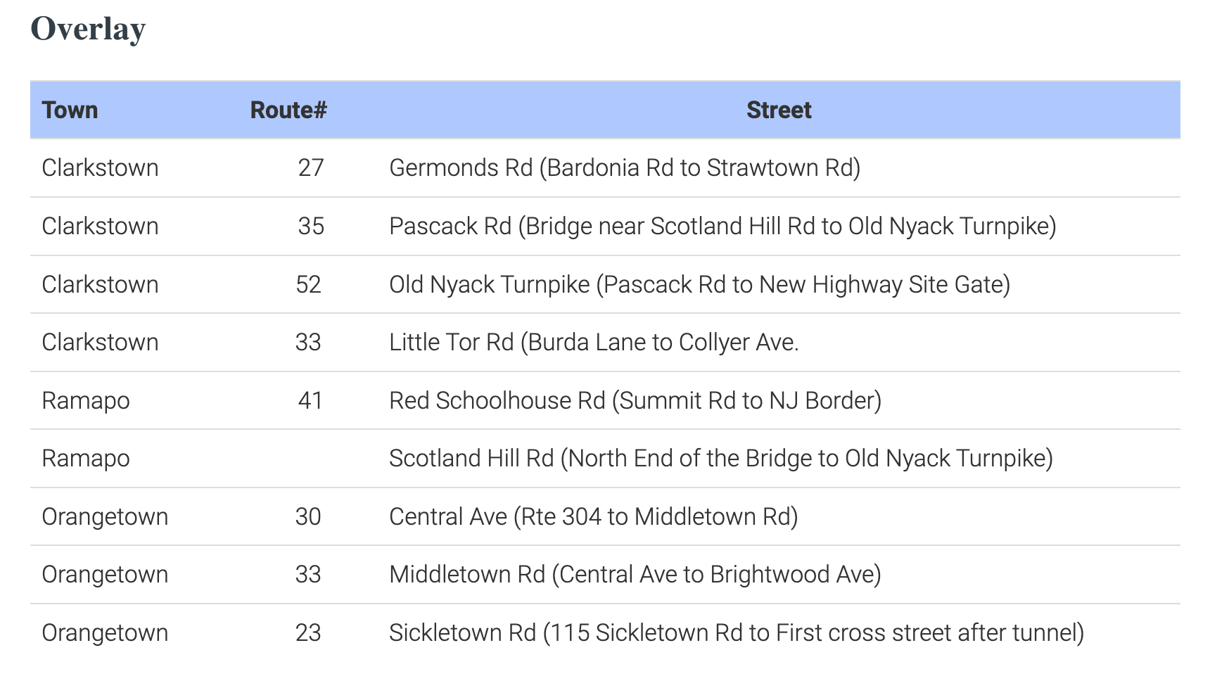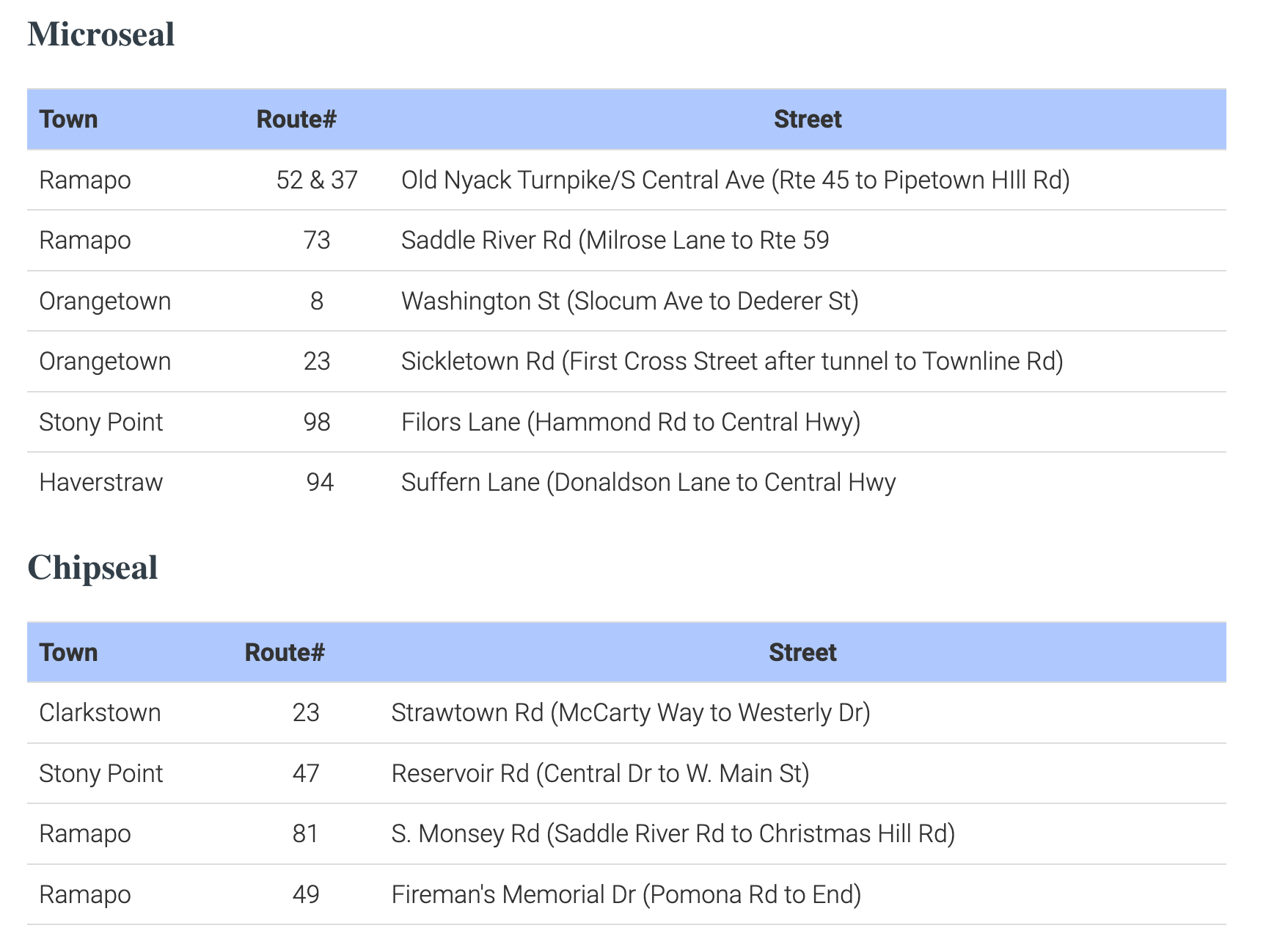ROCKLAND COUNTY, NY — Rockland County's 2022 paving plan for its county roads includes the resurfacing Wednesday of Reservoir Road from Central Drive to W. Main Street in the Town of Stony Point, weather permitting.