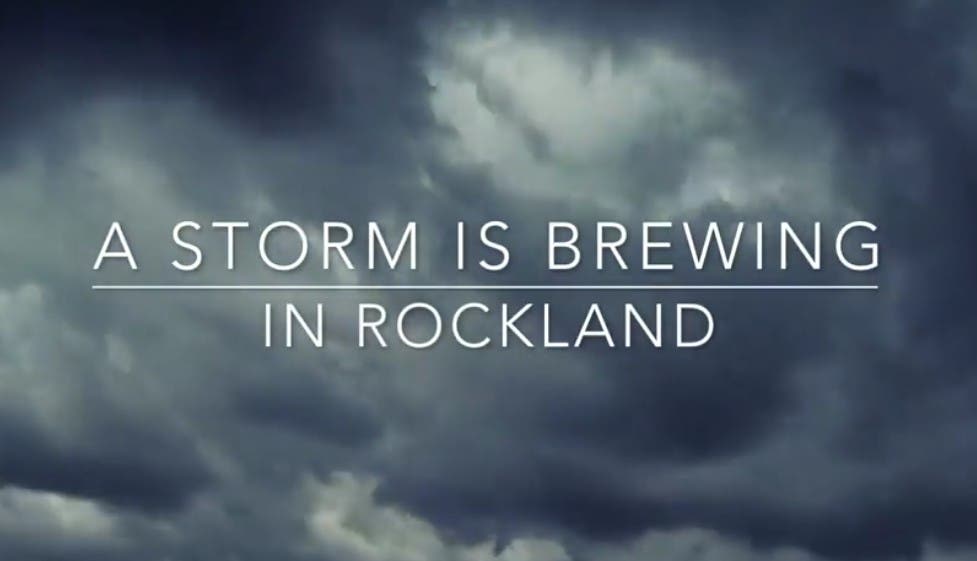 The video is entitled "A Storm Is Brewing in Rockland" and it is set to ominous music with a tense and foreboding drumbeat.