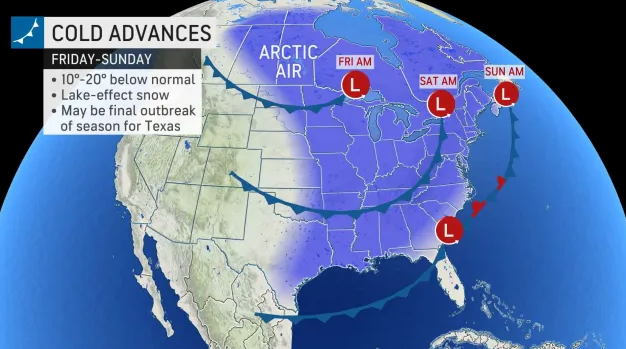 Meanwhile, a 20-degree temperature swing is expected over the weekend.