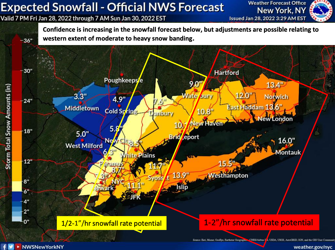 Here's the NWS snowfall prediction as of Friday morning: