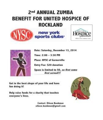 Zumba Event to Benefit Hospice at NYSC in Garnerville on Saturday, December 13, 2014 from 2:00 - 3:30 PM