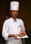 The salads and fish dishes are served fresh each day. Mesclun and red and yellow pepper garden salad with ginger dressing is topped with fried crispy leek and shown to advantage in a square white bowl ($5.50). The ceviche seafood salad ($11.25) offers a combination of fish that included tuna, octopus, salmon and salmon roe, served with a plum dressing. Chilean sea bass, marinated in miso, is sautéed with vegetables and served with a yuzu () sauce ($16.50).