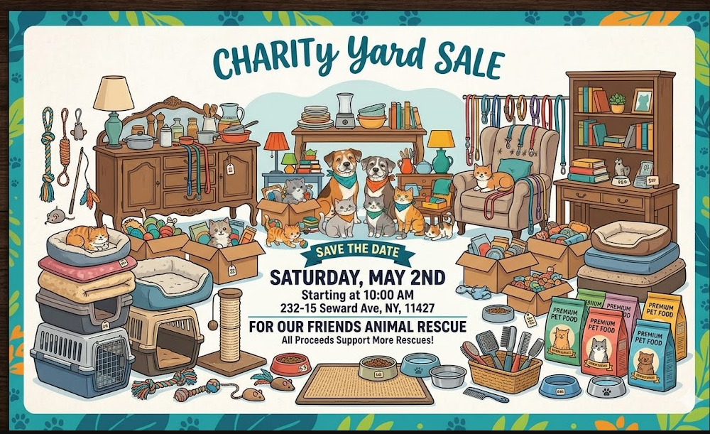 Save the Date - Charity Yard Sale - For Our Friends Animal Rescue - Sat May 2nd @ 10 am