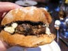I couldn’t resist the lamb burger. It was served on a good tasting roll with a spicy feta spread and a side of smashed potatoes.