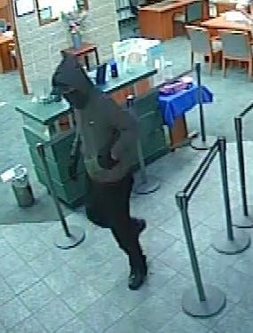 Police described the robber as white, with a medium build, approximately 6-foot-1, and wearing a gray hooded sweatshirt, a black baseball hat, a dark grey scarf across his face, back gloves, black cargo pants and black shoes.