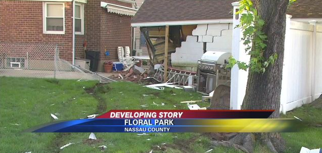 The car crashed into a fence and a detached garage of the home, located at 200 Floral Parkway, News 12 reports.