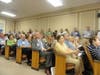 One side of the room was occupied mostly by people sporting a "ToNH Vote Yes" sticker on their clothing.