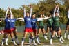 Halftime was filled with festivities with the marching band, cheerleaders – dressing in support of both the NY Giants and NY Jets – Romanettes, step team and twirlers –dressed as cops and black and white striped convict costumes – all performing in front of the packed bleachers.