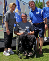 Hawkins finished with a time of 14:42 and afterwards could be seen in McDermott’s circle with Ryan’s brother Kevin, who is also in a wheelchair after suffering a spinal injury when he dived into a swimming pool about two years ago and with whom Hawkins had not previously had the opportunity to speak at any prior race about coping post-injury.