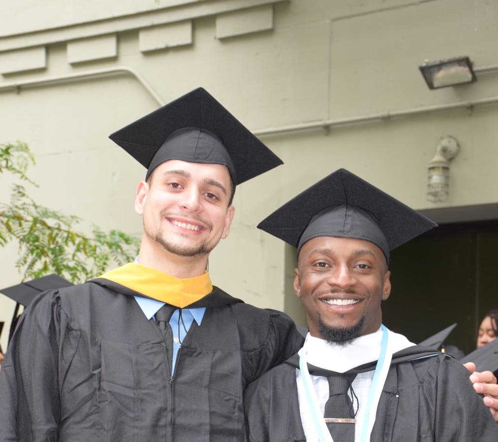 NEW ROCHELLE, NY — History was made at the College of New Rochelle when the first two male students to graduate from the School of Arts and Science received their degrees. When they transferred to New Rochelle last year to complete their degrees, neither Chris Brannon nor Cristian Perez Del Castillo expected that they would be making history.