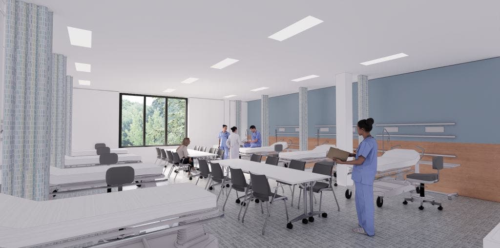 The approximately 32,000-square-foot Kelly Center for Health Sciences is scheduled to open in January 2023. Located on the former campus of Concordia College, which Iona acquired in May 2021, the newly renovated building spans three floors and features state-of-the-art equipment and medical facilities. The entire top floor is dedicated to recreating a hospital setting, complete with cutting-edge simulation labs, examination rooms and training equipment.
