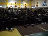 The packed gym celebrated with the team after they found out they will play Ohio State in Dayton, OH, this Friday.