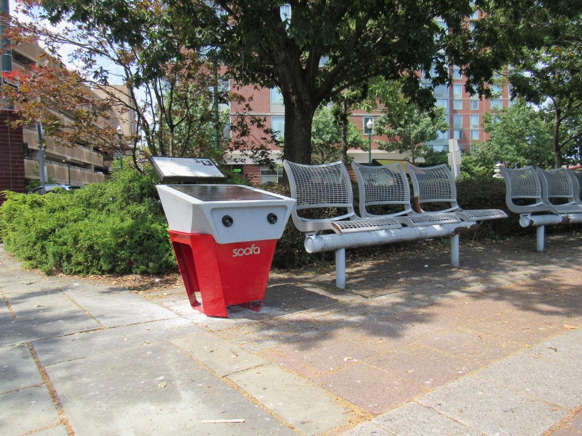 The city acquired two “Soofa” charging stations with built-in benches and two stand-alone charging stations located next to existing city benches.