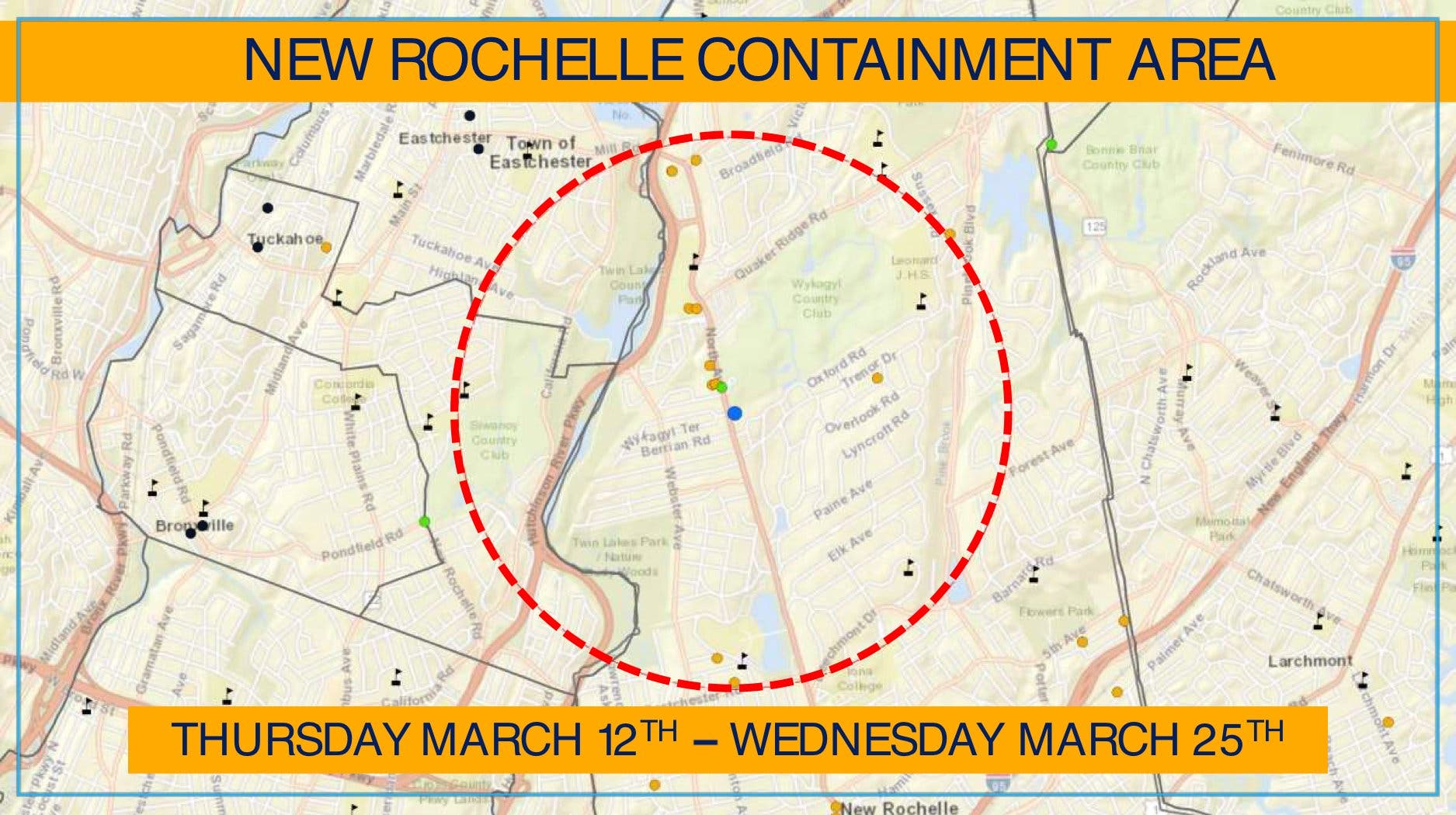 On Tuesday, Cuomo called the New Rochelle coronavirus cases a "very intense cluster" before announcing the containment plan. Places where groups of more than 25 people gather, such as the children's library, are to be closed within a mile radius of the synagogue.