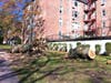 Tree removal crews worked Sunday to tackle a huge tree that still blocks Harbour Lane. There is no public access to Glen Island Park due to down power lines.