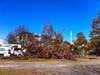 While tree removal at the intersection of Woodland Avenue and Circuit Road was completed Friday, there are still wires on the roads and sidewalks throughout the intersection, and none of the downed poles, electricial equipment or light fixtures have been removed. There has been no further work in that location since Friday.