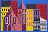 While Sheldon’s paintings are known for their characteristic “flat” style, he has also designed and made jewelry, pottery, wood sculpture and wood toys. He studied art at the High School Of Music and Art in Manhattan and at the Brooklyn Museum Art School. Born and raised in Brooklyn, New York , he later continued on as an art major at Syracuse University. Following his marriage to wife, Ruby, they owned a store called Scarlatti Ceramics based in Greenwich Village. Later they founded Katan Toys in Provincetown, Massachusetts which moved to Rye along with the family, where he still lives and works.