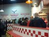 Chris Kelly from Mount Vernon had his first Five Guys cheeseburger that night with all the toppings, sans mustard. “It’s good. I have no complaints,” he said. They were undeterred by the long lines.