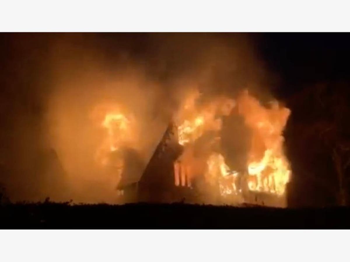 The blaze broke out around 4:20 p.m. Monday at the home located at 44 Wildcliff Road overlooking the Long Island Sound.