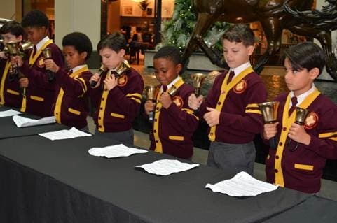Students from Iona Preparatory’s Lower School Bell & Vocal Choirs performed at The Westchester in White Plains earlier this month, singing carols and sharing their talents with shoppers. The vocal choir dates back to at least the mid-1950s when the former Iona Grammar School first moved to its present home on Stratton Road. The Bell Choir, previously an Upper School staple, made its way to the Lower School in the new millennium and continues to flourish under current director Stefynie Rosenfeld.
