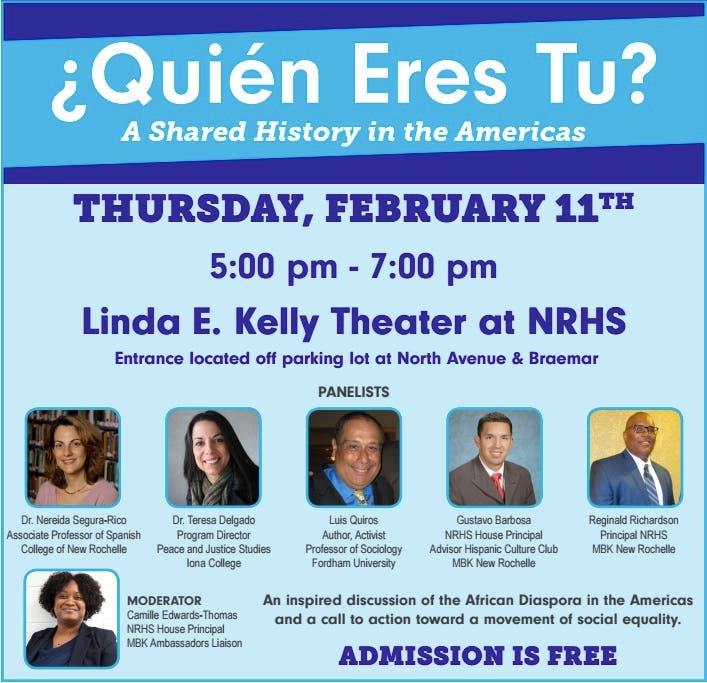 The event will take place at the Linda E. Kelly Theater at New Rochelle High School, which is located adjacent to the parking lot at the corner of North Avenue and Braemar.