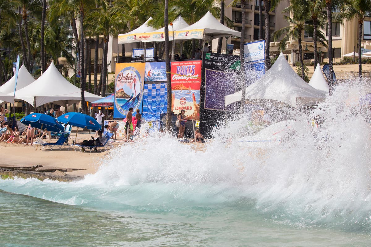 The Mayor also suspended the last two days of Duke's Ocean Fest, the largest surfing competition on the South Shore after brutal waves hit this past Wednesday. (Photo by Kat Wade/Getty Images)