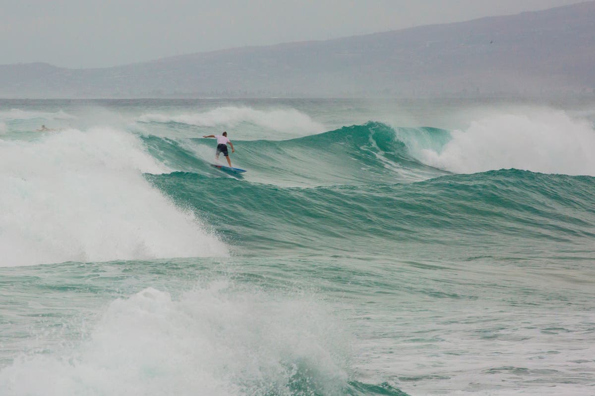 Some brave souls even took to surf the erratic waves, despite the beach being ordered closed by Mayor Kirk Caldwell as Hurricane Lane approached Waikiki Beach on August 23, 2018 in Honolulu, Hawaii. (Photo by Kat Wade/Getty Images)
