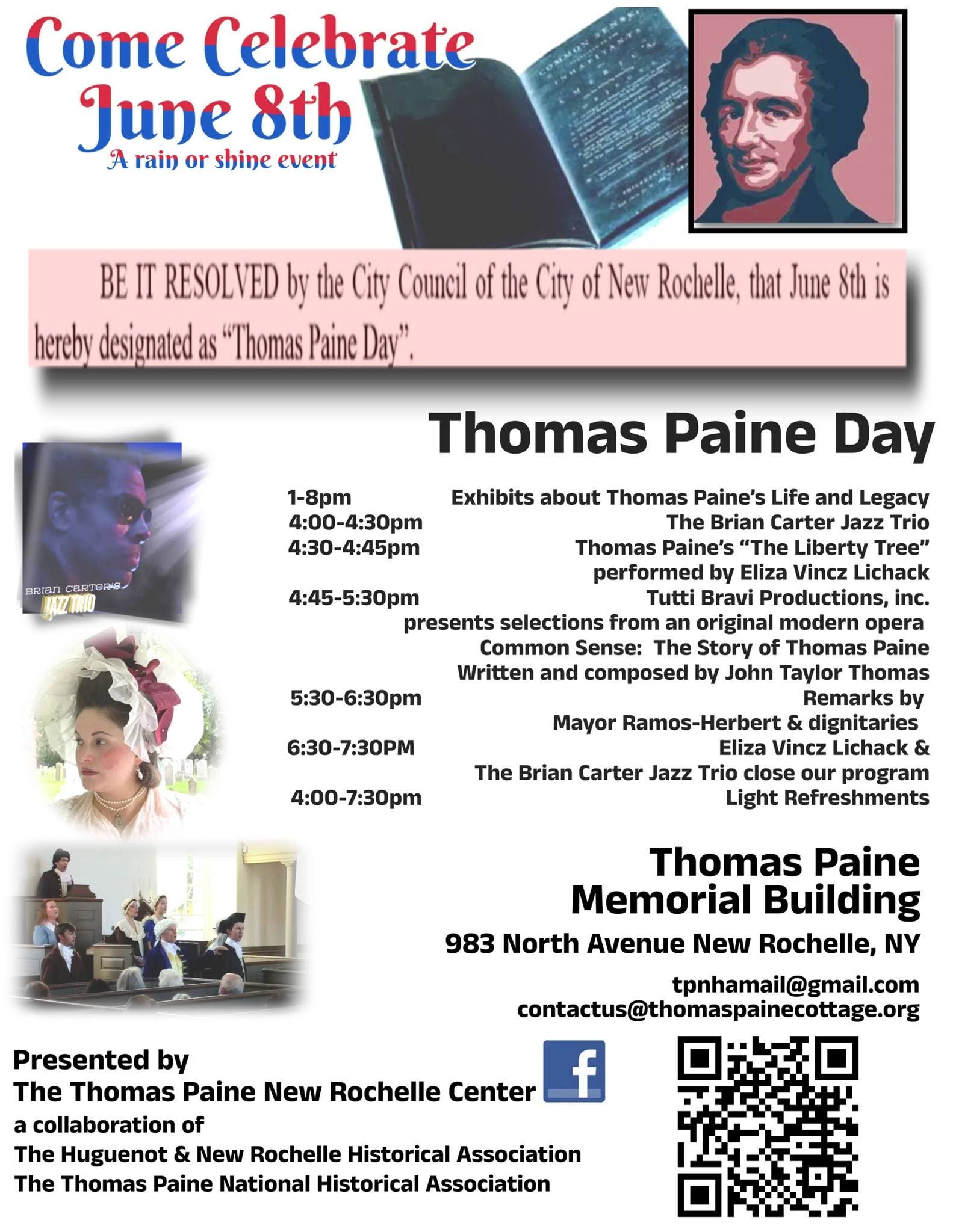The Thomas Paine National Historical Association (TPNHA) and the Huguenot & New Rochelle Historical Association (HNHRA) say that they applaud the New Rochelle City Council's decision on April 16 to establish June 8 annually as Thomas Paine Day in New Rochelle.
