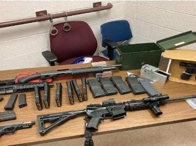 Then further investigation by police detectives led to the discovery of more illegal guns from his home, police alleged. They said the weapons found there included an AR-15 Assault Rifle, an assault shotgun and a 9MM Glock handgun with seven large capacity magazines.