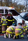 Betty Hermann, 80, of Southold was hospitalized after being pulled from a 2007 Toyota following a car accident at the Empire gas station in Southold just after 4 p.m. on Tuesday, police said.