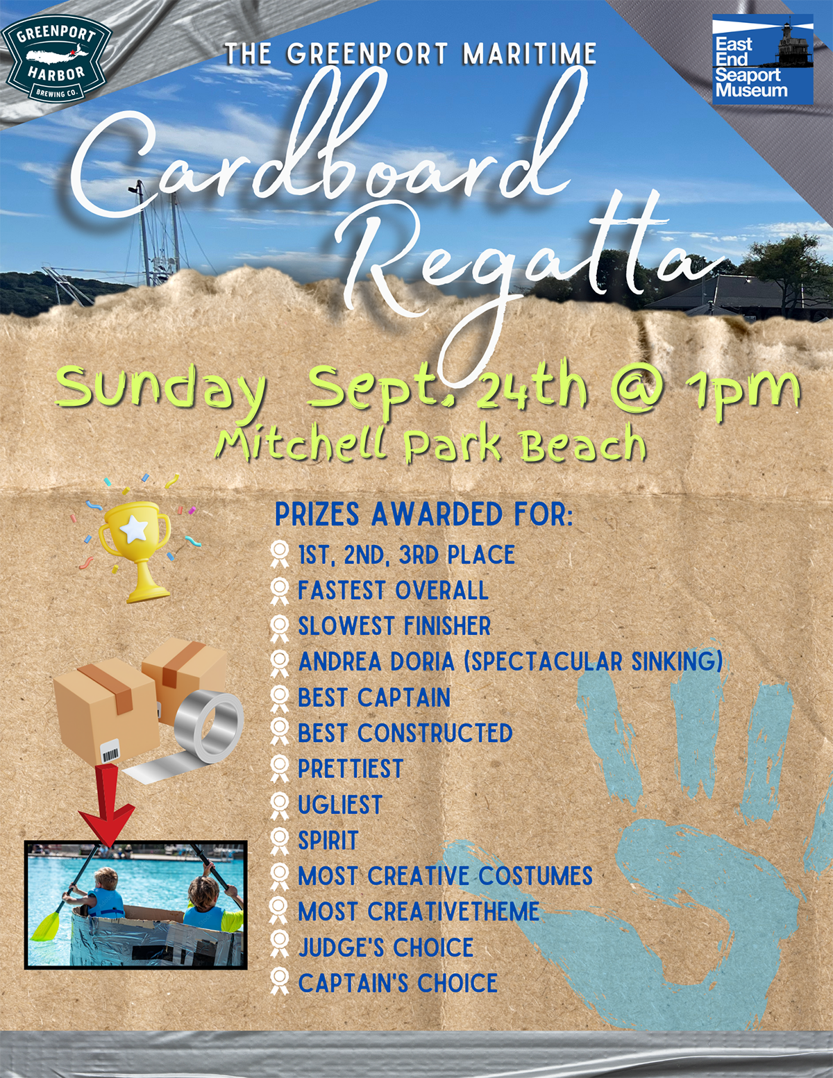 Many have experienced the fun of the Cardboard Boat Races in Riverhead and the Cardboard Regatta will follow in the same tradition, with prizes awarded for kids and adults in a wide range of categories.