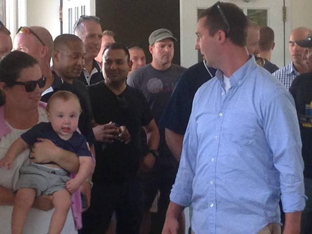SOUTHOLD, NY — After a police officer was allegedly injured in Southold Justice Court by an agitated homeless defendant, radios did not work, according to Southold Town Police Benevolent Association President Richard Buonaiuto, who came, along with a crowd of police officers and their families, to ask the town board Tuesday for immediate attention to the issue.