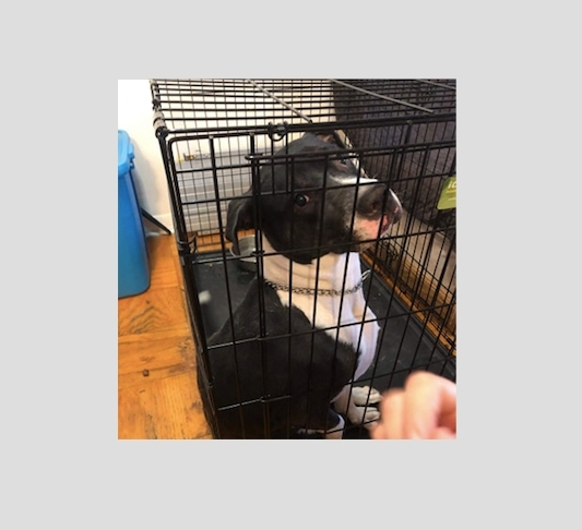 Luna is a "pretty pit mix . . . about a year old. She's sweet — and needs a loving home ASAP," Franke said, after her owner died suddenly recently.