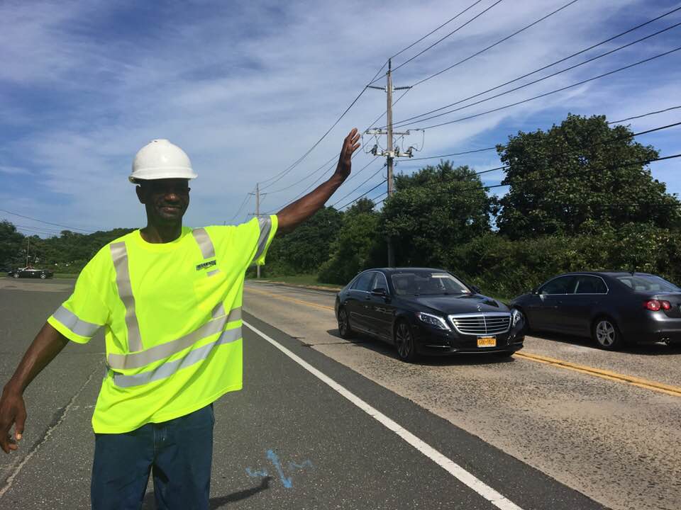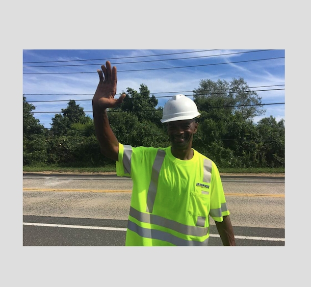 NORTH FORK, NY —Standing on County Road 48 in Greenport Tuesday, Anthony Brown, wearing his hard hat and reflective vest, was a sight for sore eyes for the many drivers who passed by, honking their horns, smiling, calling out his name, and waving — always waving.