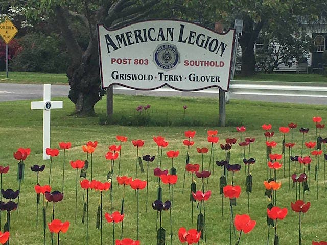 SOUTHOLD, NY — A memorial field of poppies has been placed for the second year in a row outside the American Legion's Griswold Terry Glover Post #803 in Southold to remember those who lost their lives to protect the United States of America.