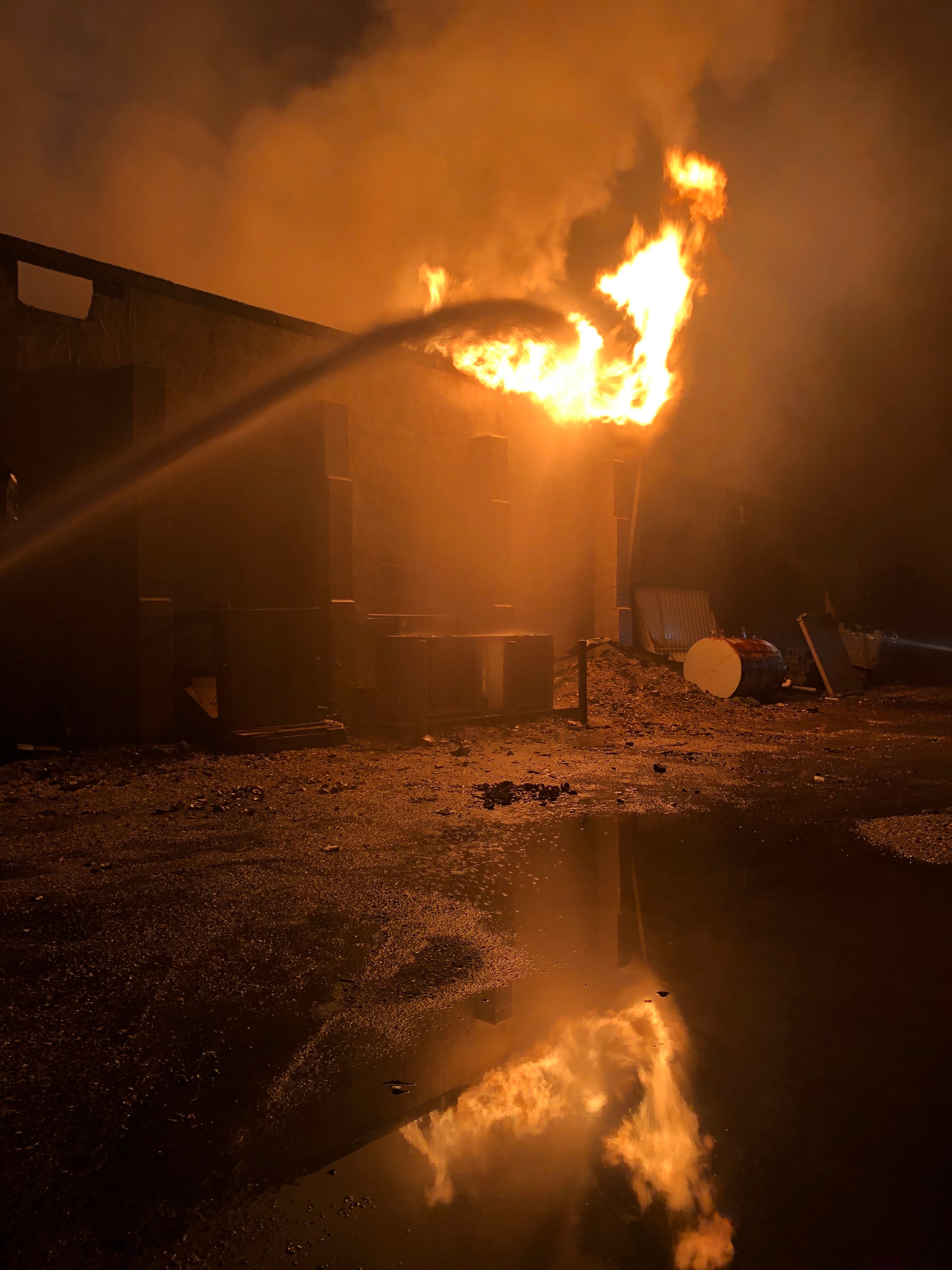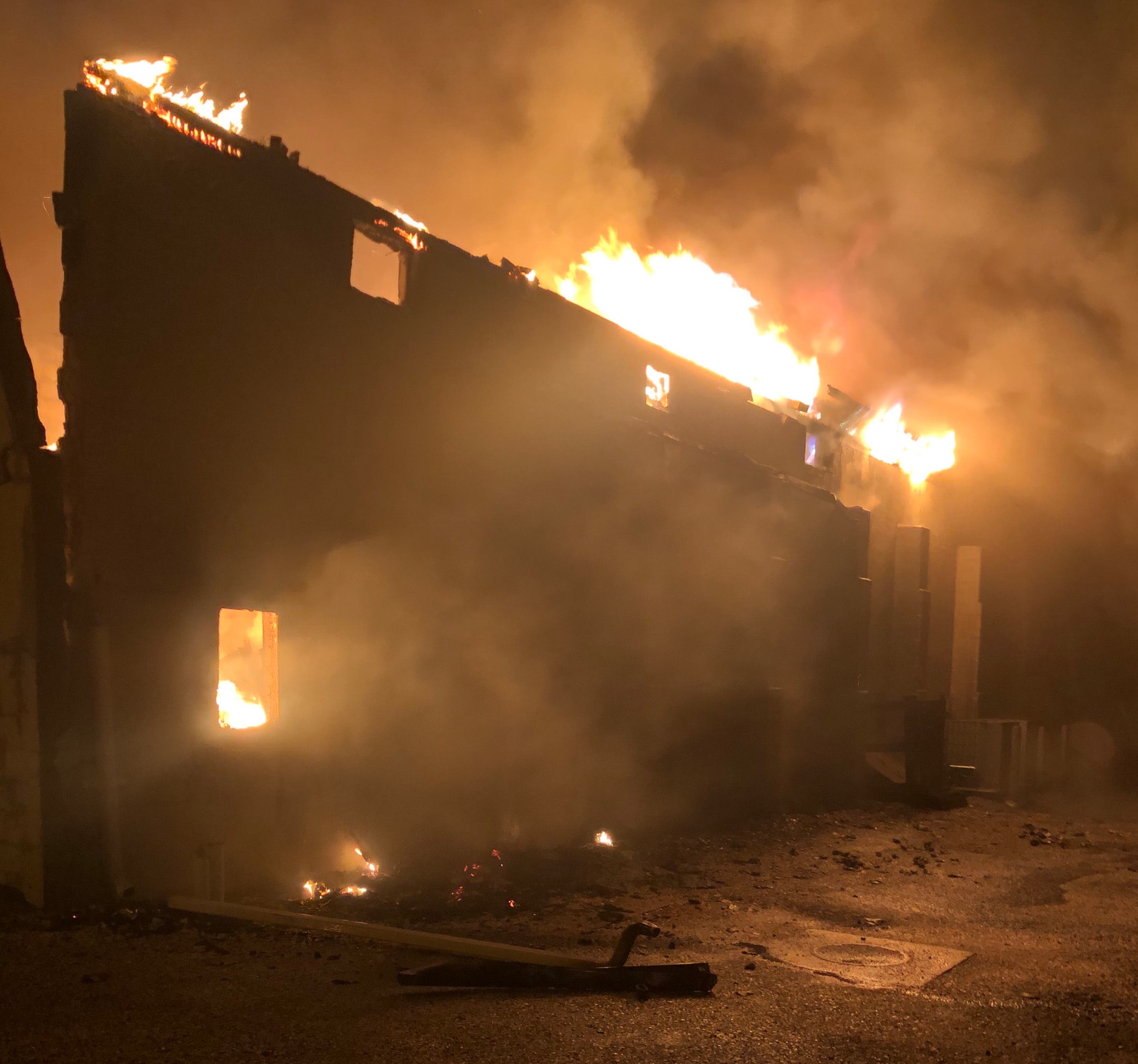 Other fire officials at the scene said the blaze was difficult to knock down because when the roof collapsed, the fire was trapped beneath.