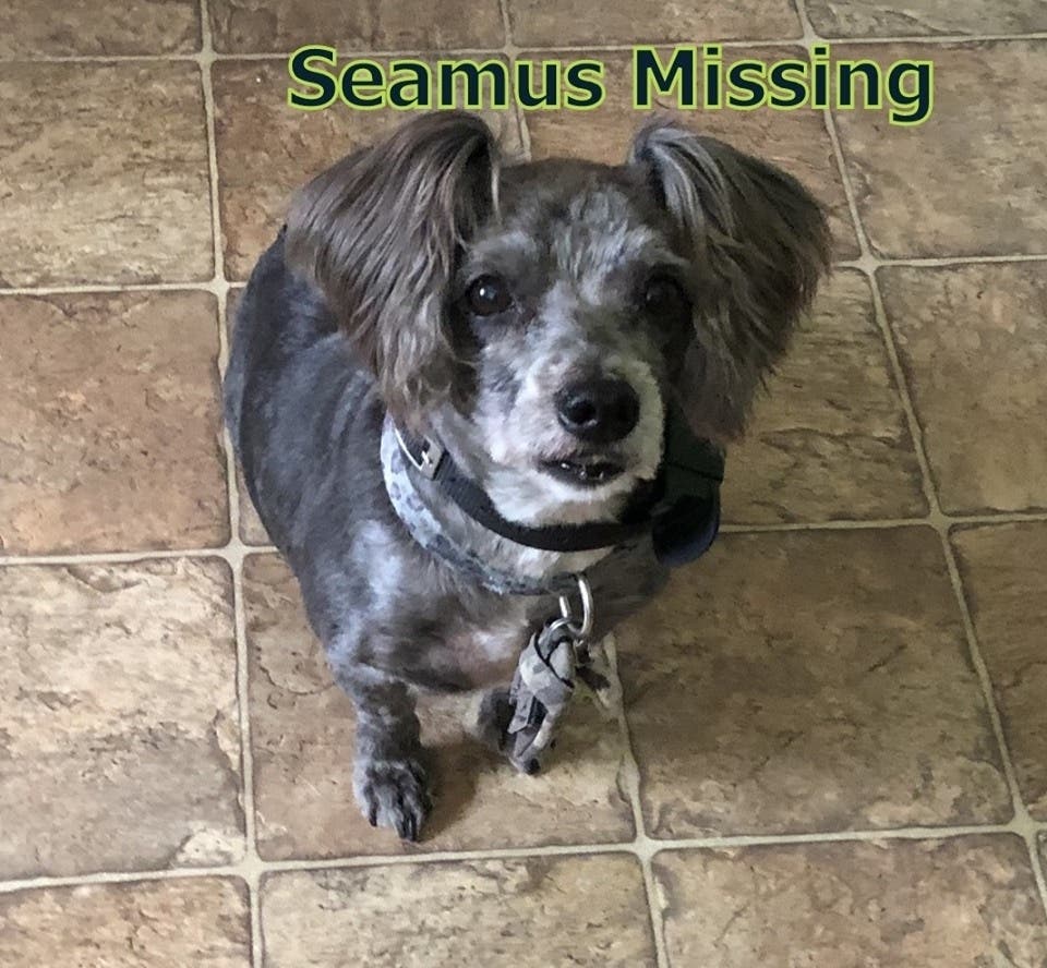 Seamus' family and volunteers have been searching desperately every day and are "heartbroken" and "beyond grateful" for any help in bringing their precious pet home.