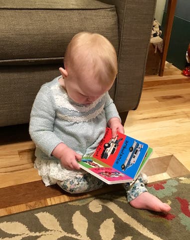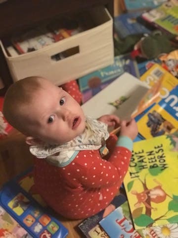 Claire, Suzanne said, was fascinated with books, holding them the right way and looking at them intently. One day, she pulled all the books off the shelf and was happily ensconced among a sea of titles.