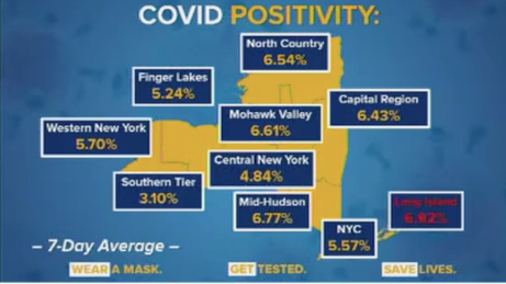 LONG ISLAND, NY — As the coronavirus positivity rate in New York continues to trend downward to 5.47 percent after a holiday spike, Long Island now has the highest positivity statewide at 6.92 percent, Gov. Andrew Cuomo said Monday.